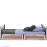 Le nouvel aménagement comprend principalement des lits Olympia Hospital, fonctionnels et ergonomiques, conçus pour offrir confort, sécurité et efficacité dans les soins. Pour le service psycho-gériatrique, le choix s’est porté sur les lits Terra Hospital. Grâce à leur position de repos exceptionnellement basse de seulement 18 cm, le risque de chute est considérablement réduit, ce qui les rend particulièrement adaptés aux personnes âgées souffrant de troubles cognitifs ou physiques.