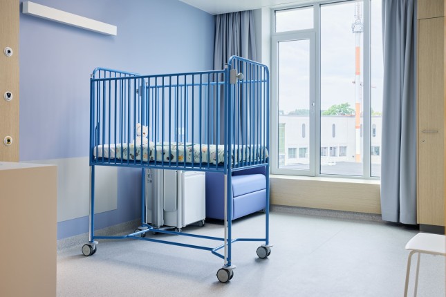 In der Entbindungsstation stehen Olympia-Hospitalbetten mit Atmosphère-Seitengittern und einem Ilana-Nachttisch mit den neuesten eingebauten Dometic-Kühlschränken. Für Ruhemomente im Zimmer sind Mauro Ergo-line-Relaxsessel vorgesehen, damit sich die Mutter bequem entspannen und erholen kann.
