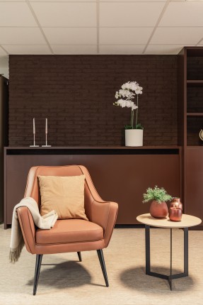 In de residentiële assistentiewoningen van Ten Olme in Kortrijk werden de brasserie, de ontspanningsruimte en de zithoeken ingericht.